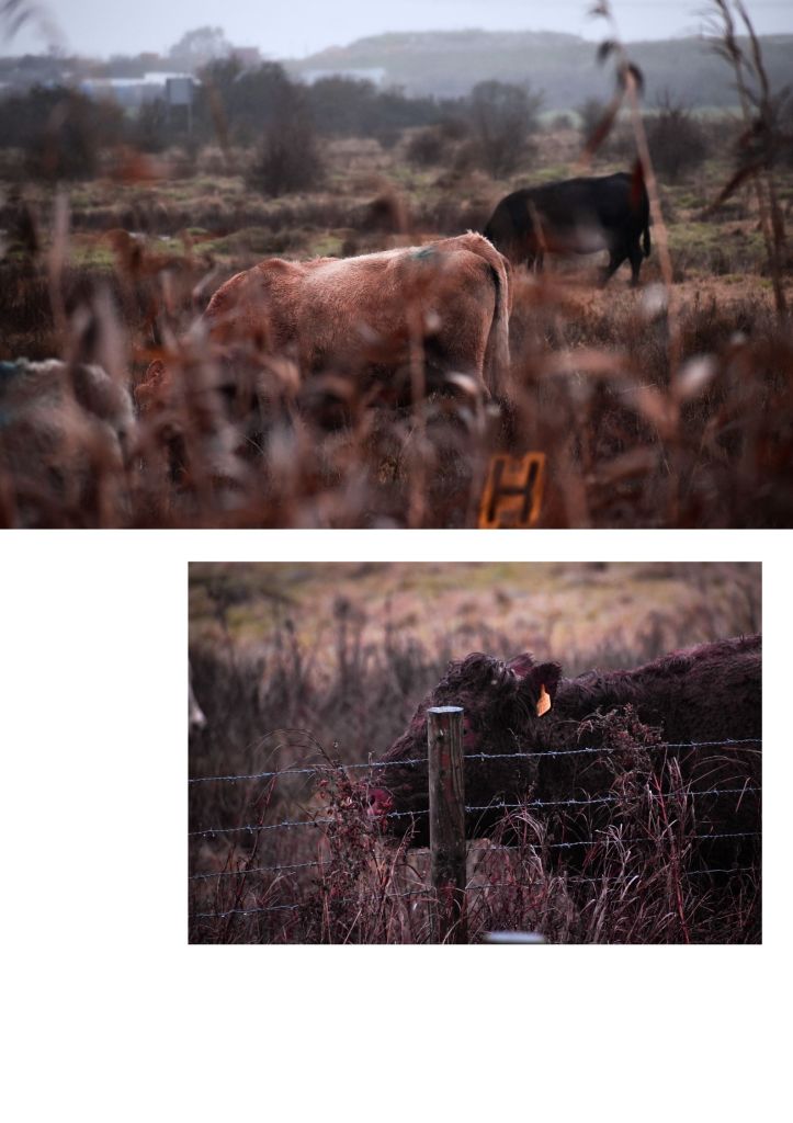 As I final response to my project I developed a 100 page Photobook featuring all of my best photographs, neatly chosen and organised to have a similar theme and a continual colour palette all throughout. I began my Photobook with the photographs I took bellow the Sheppey bridge, merging both rural and industrial: including landscapes, structures and animals. I spaced out the images, using block colour pages and negative space to neatly divide and present all of my photographs; organising the images into the order in which they were taken, showing my train of thought whilst in the process of taking them. I then incorporated some of my obstructive camera technique photographs, whilst gradually introducing the snow landscapes; allowing the colour palette to transition from warm tones (red, brown and pastel ink) to cool blues and greys.