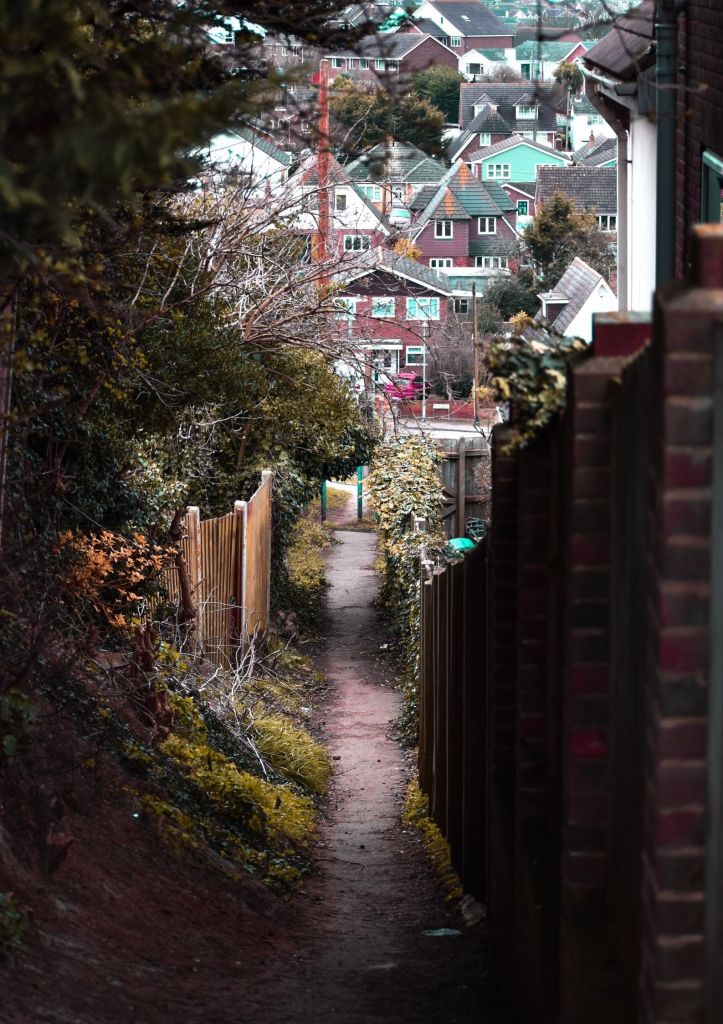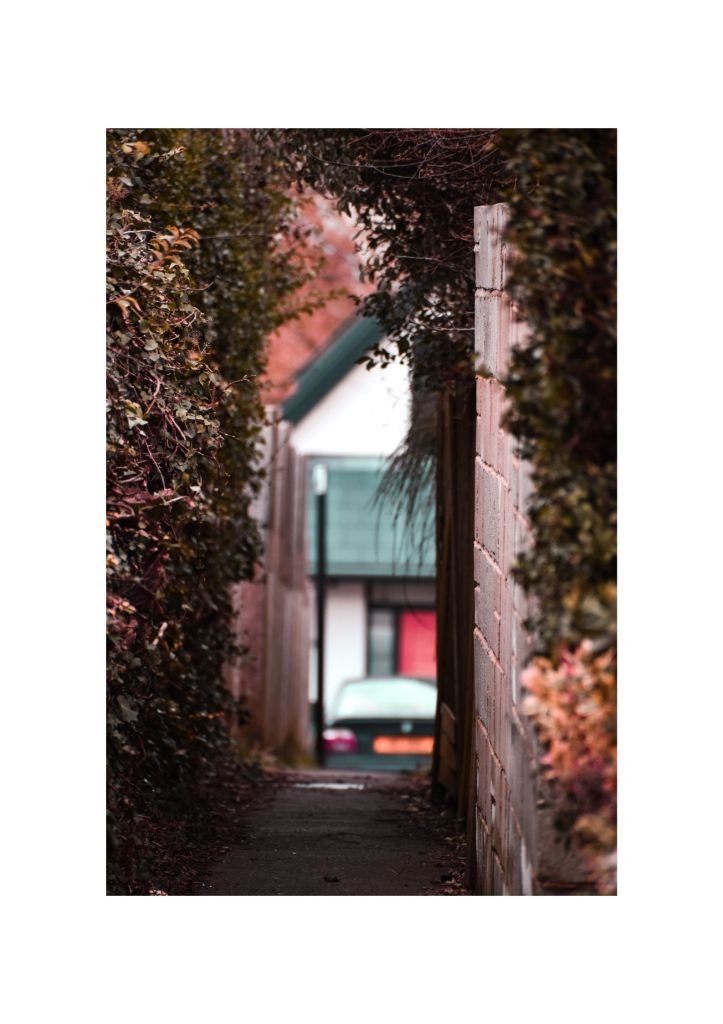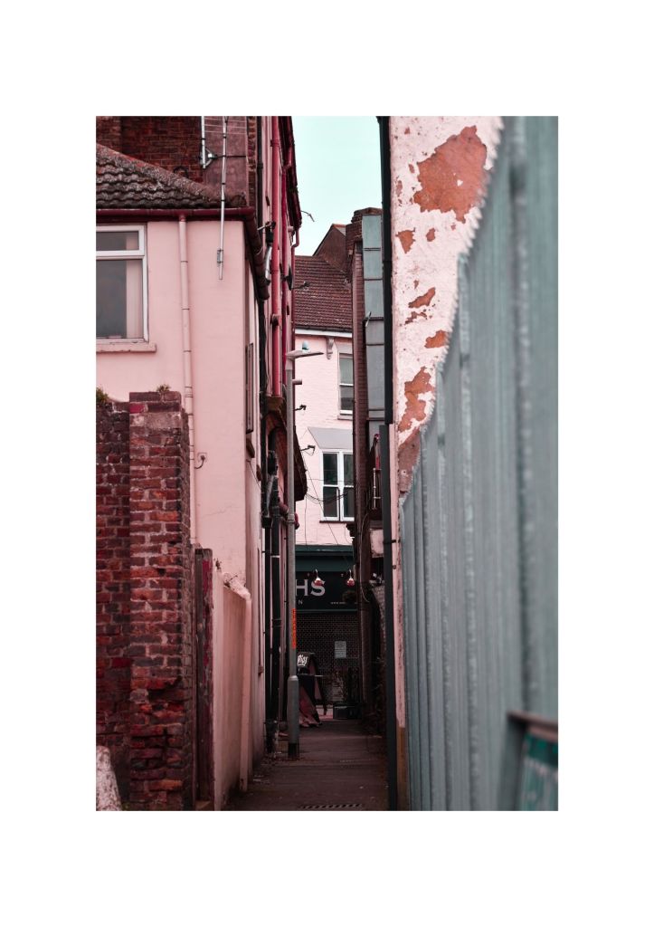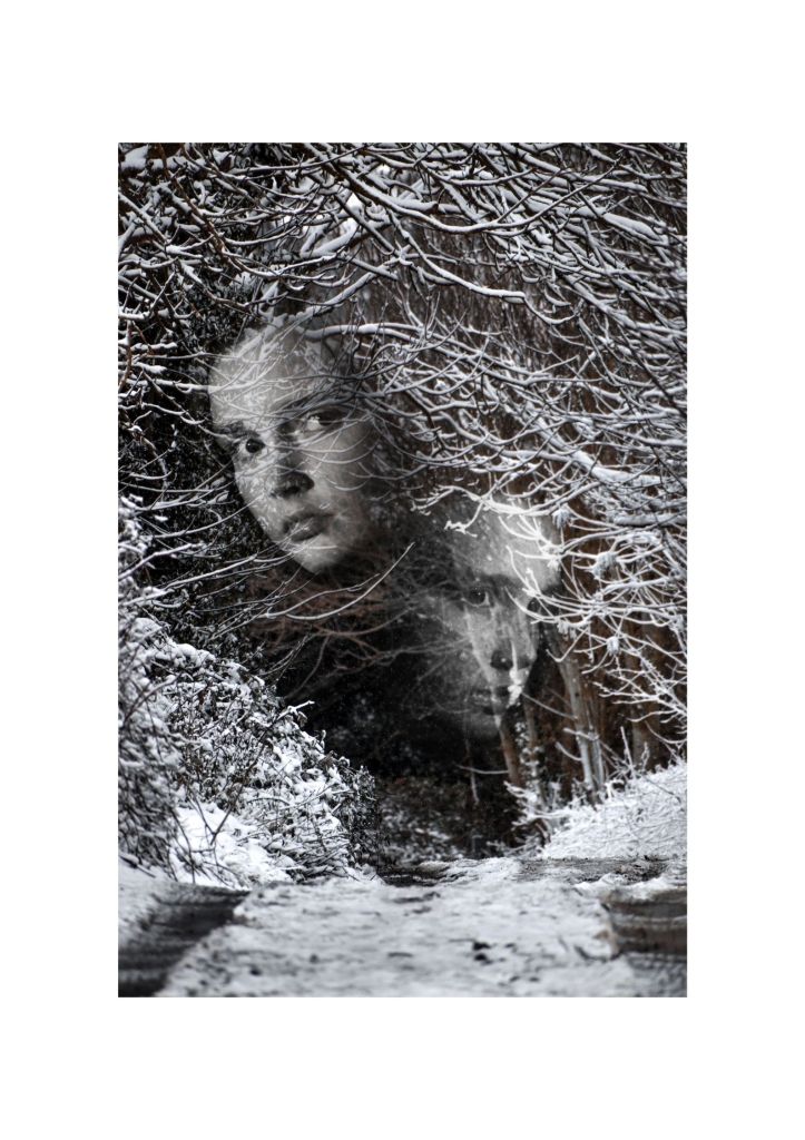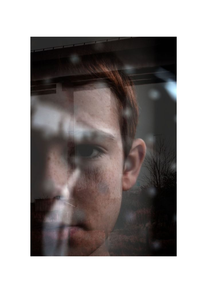 I then continued to manipulate eyes and faces; exploring compositional techniques whilst taking photographs of rural landscapes. My work then began to take a more experimental approach, exploring the work of Fredrick Sommer and Van Bor exploring black light, before completing the screenshot project where I montaged digital photographs taken by other people together into a new image. I then completed the freelensing project where I explored obstructive camera techniques similar to within my previous work; double exposing my images onto landscape photographs I had taken beforehand: reverting back to my cinematic Surrealist style. I finished my project with two shoots: one which I had taken whilst it was snowing during our second lockdown and one of different alleyways located all around the Isle of Sheppey. Once again I explored both rural and industrial landscapes, double exposing them onto portraits and developing them into a 100 page photo book as my final response to this project.