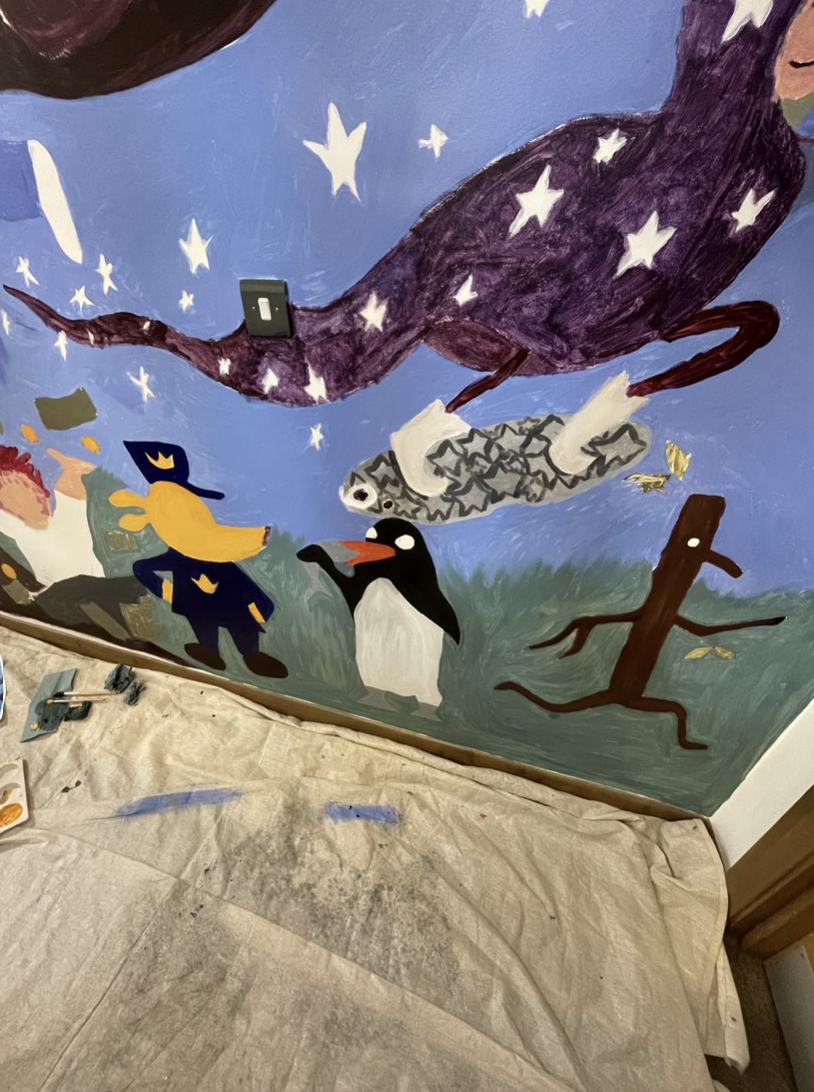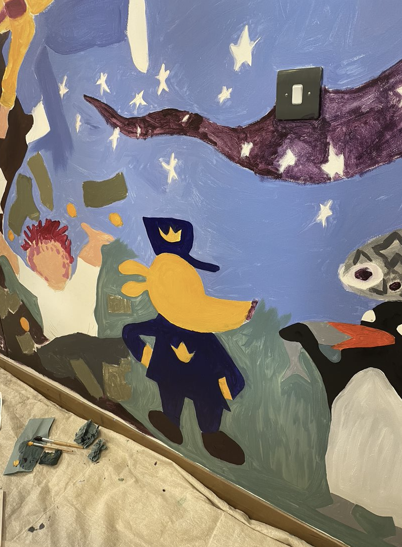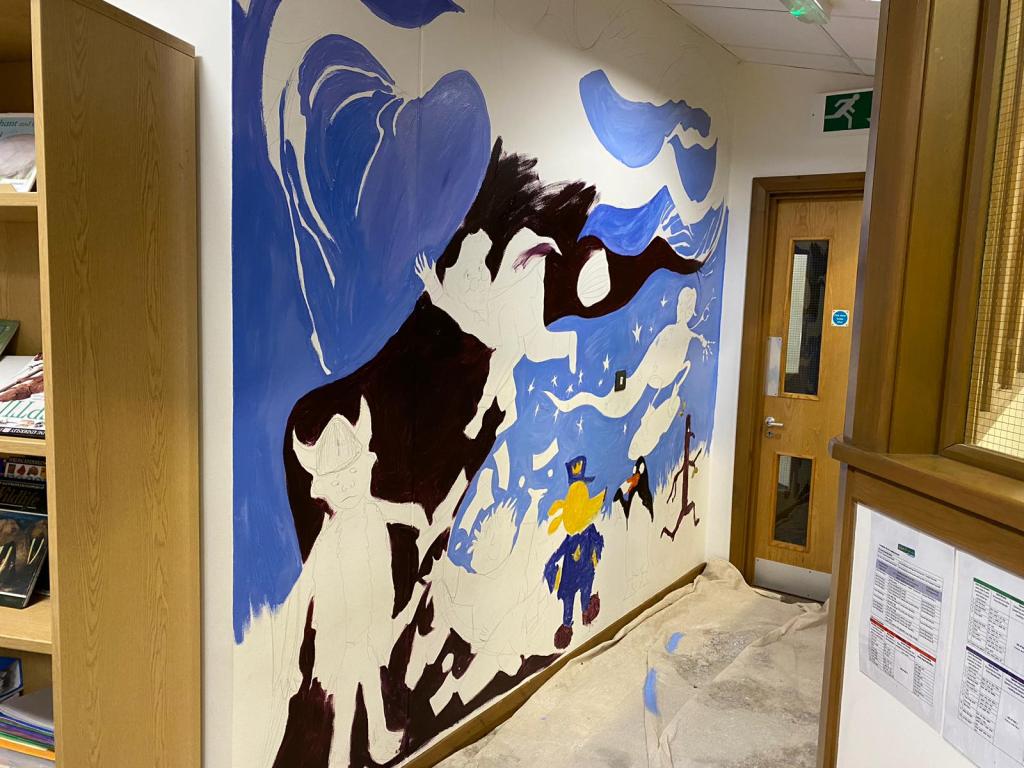 The reading dragons are a group of children spanning across all year groups (1 through 6) that express an avid passion for reading. I was asked to run workshops with two students from each yeargroup who are apart of the Reading Dragons. The workshops spanned over the course of two days ranging from 10-60 mins depending on the age and capabilities of the yeargroups. Each yeargroup chose one of their favourite characters from their favourite books and the children were able to paint them alongside me, allowing them to be involved in the painting of the mural.